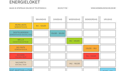 Nieuwe openingsuren woon- en energieloket Nazareth- De Pinte! Vanaf 20 april 2026 worden de openingsuren van onze loketten in Nazareth- De Pinte aangepast.